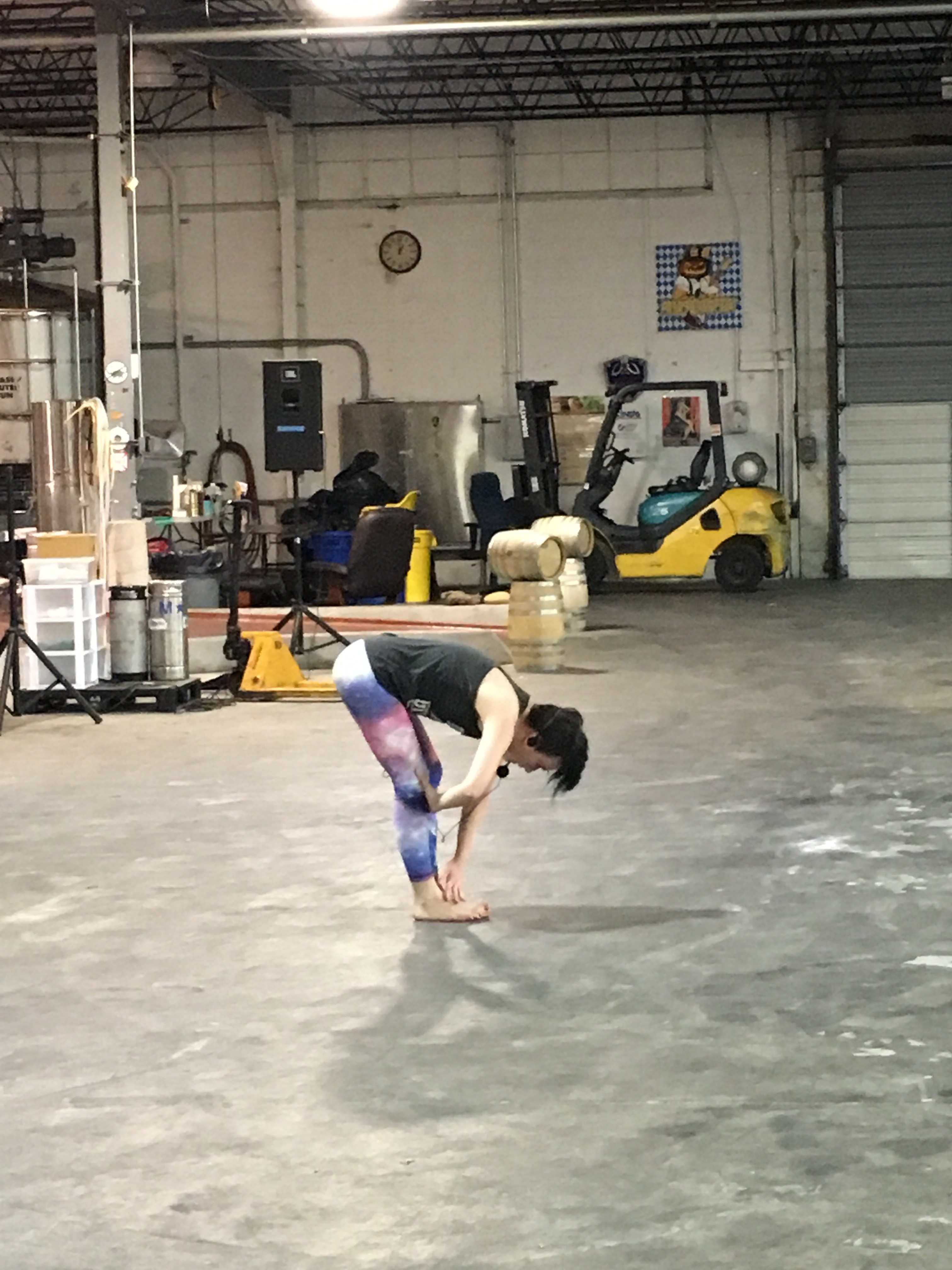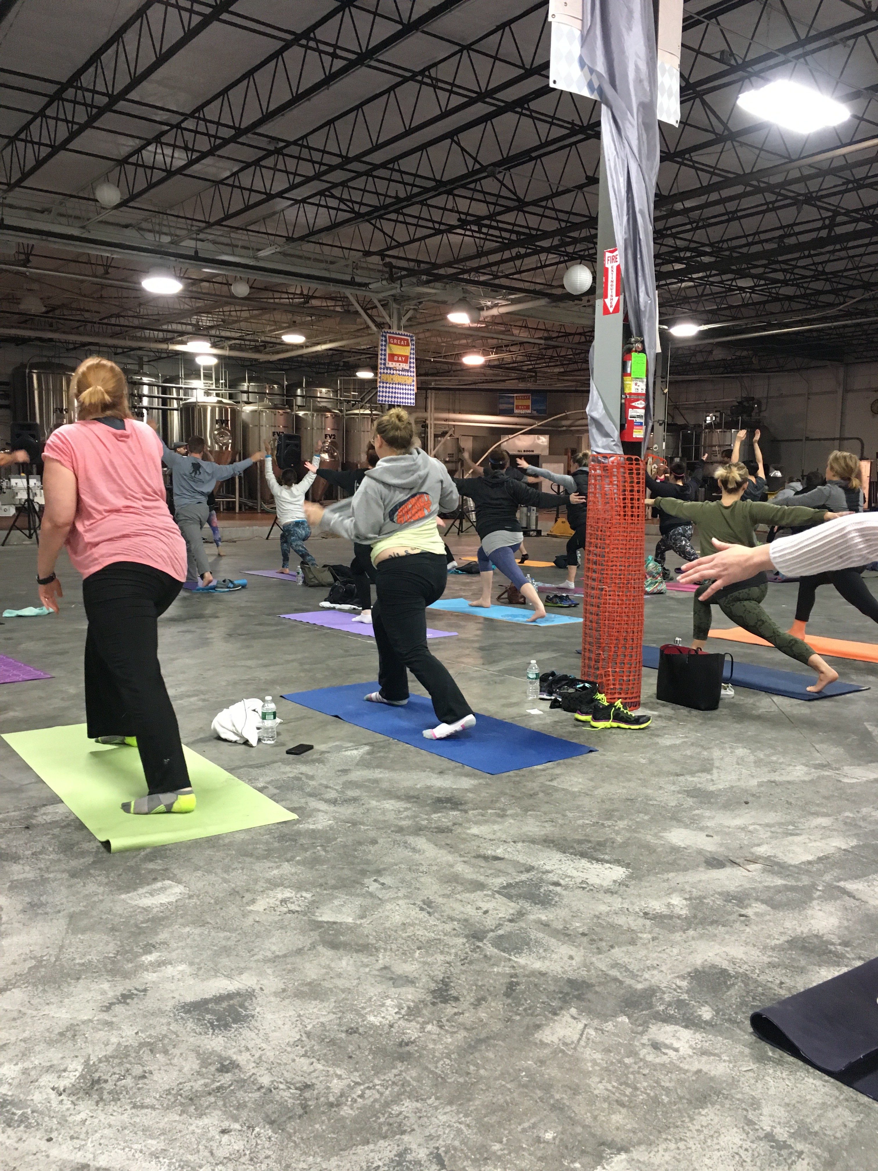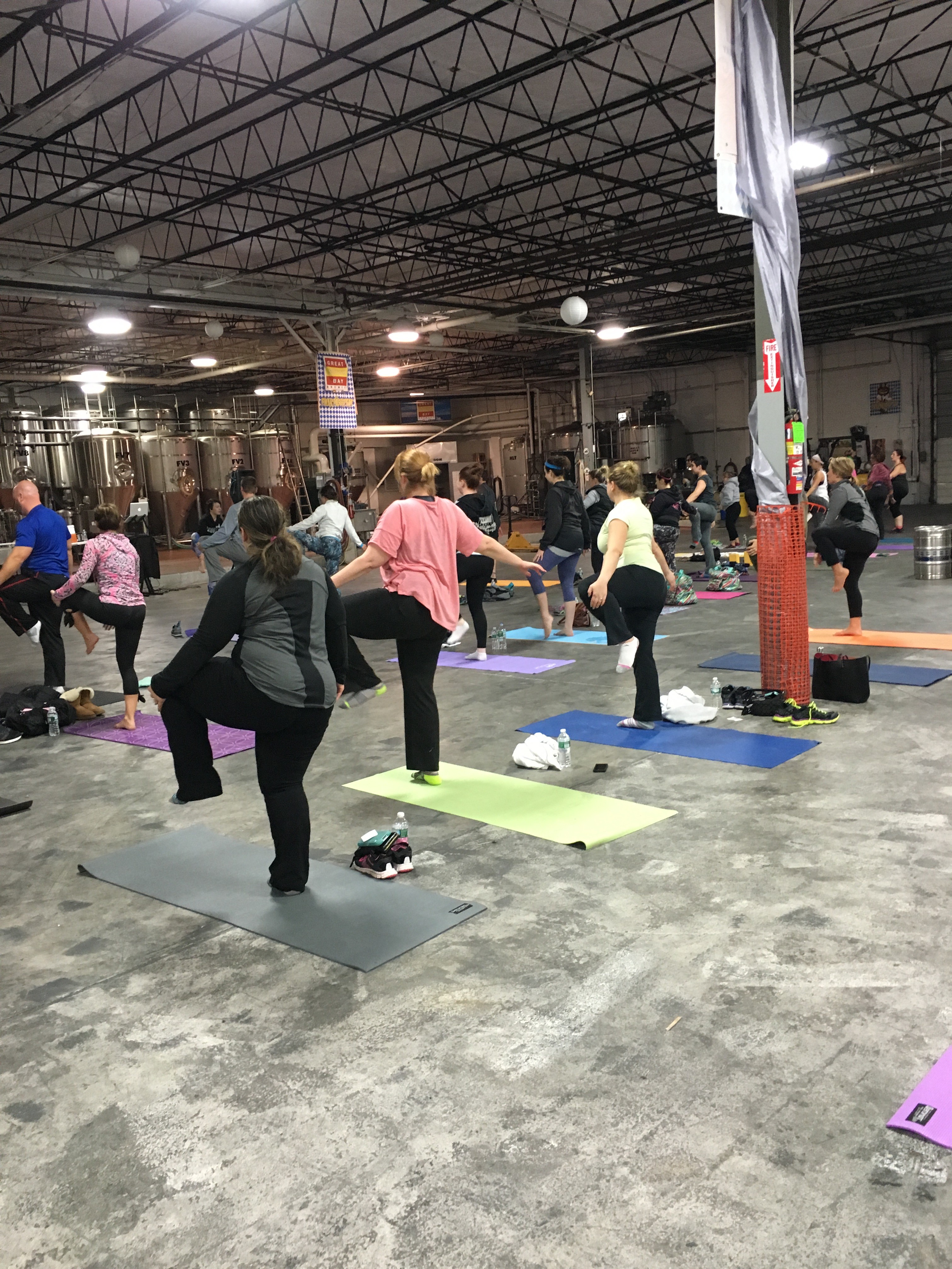 Doing yoga in a brewery was definitely an experience to remember. While in yoga pose Warrior II, you are facing the giant metal vats and fermenters; you turn around and see the boxes of hops.